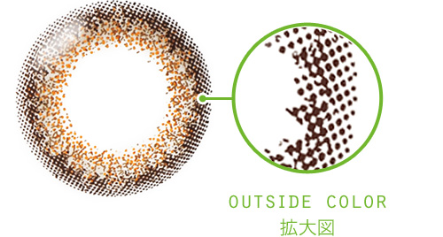 外周部は、ドットのひとつひとつが外側にむかって小さくなっていくグラデーションパターン。輪郭がより自然で、大きな瞳を演出します。
