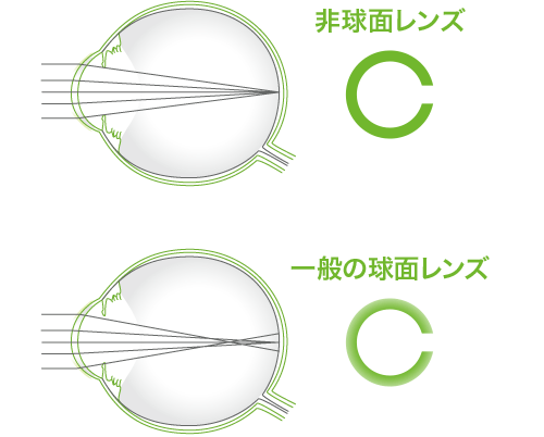 非球面デザインなので、レンズ周辺部からの光が収束し、像がゆがんだりぼやけることなく、よりはっきり鮮明に見ることができます。