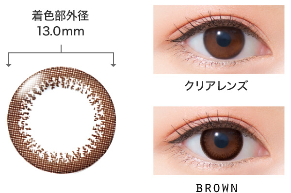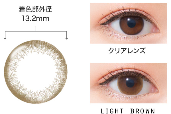 瞳をナチュラルに明るく見せてくれる、柔らかなライトブラウンです。黒目に自然になじみ、キュートで優しい雰囲気になります。