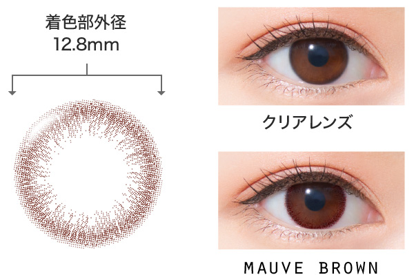 ブラウンにほんのりピンクをプラスした、モーヴブラウンです。繊細なデザインが瞳に透明感をプラス。美しい発色が透き通った眼差しを演出します。